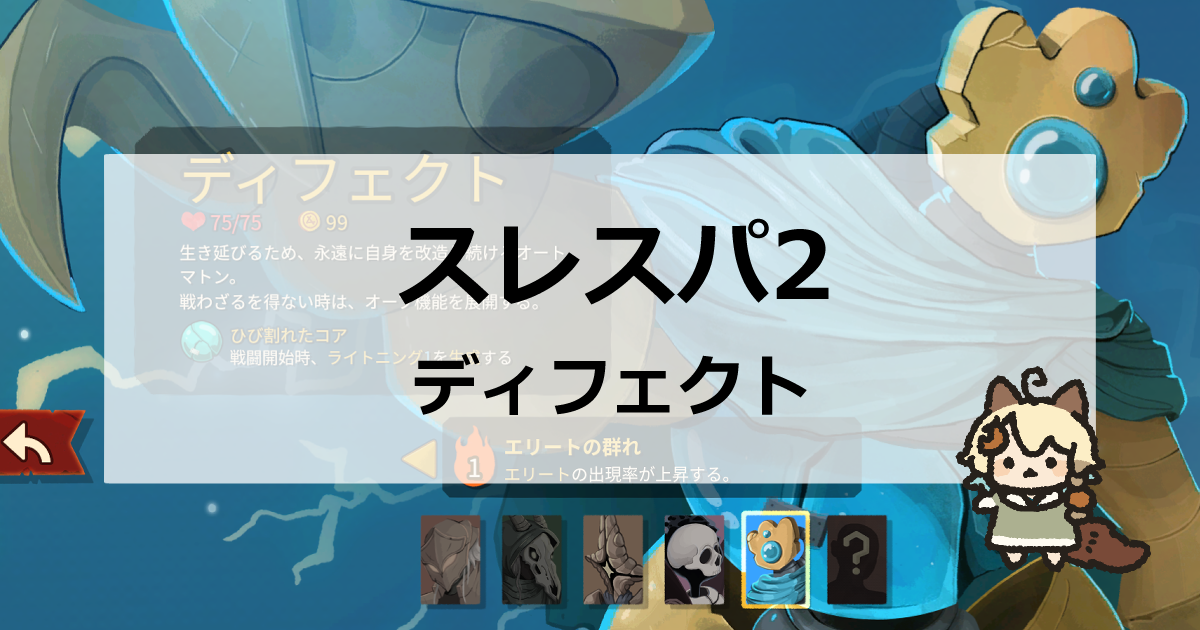 この記事ではスレスパ2(Slay the spire Ⅱ)の「ディフェクトのダーク軸デッキ」を解説しています。おすすめカードやレリックをまとめているので、ディフェクトが弱くて勝てない人はデッキ構築の参考にしてください。
