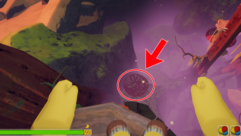 「キノコで40メートルジャンプする」実績は、深き森にある赤いキノコに高所から降りると獲得できます。木々の高所にある道を進みつつ、下に赤いトランポリンキノコがあれば飛び乗りましょう。
