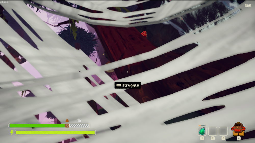 また、クモに捕まっている間は徐々に毒ダメージを受けます。なるべく早くSpaceを連打して、クモの巣から逃れましょう。