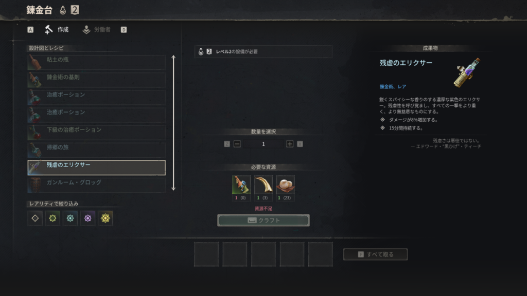 「残虐のエリクサー」は、15分間にわたって攻撃力を8%上昇させる強力なポーションです。