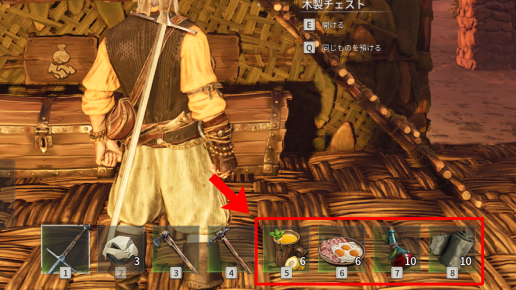 食材のままだと死亡時にドロップしてしまう