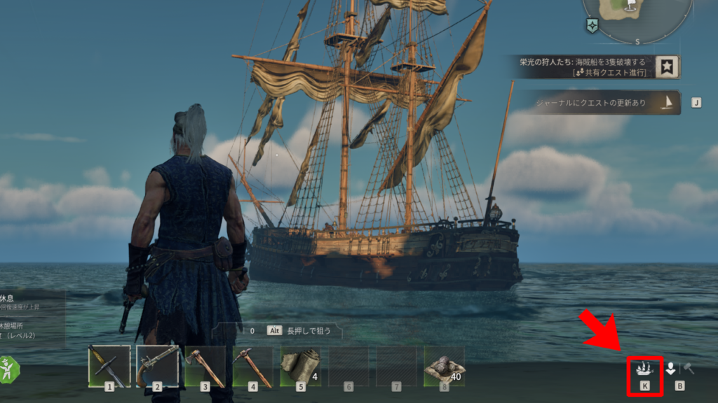 船を入手した後は、海辺でKキーを押せばいつでも呼び出し可能です。また、舵を操作している最中にマップを開くと、解放済みのポイントへファストトラベル(ワープ)ができます。移動の効率が劇的に上がるので、積極的に活用しましょう。